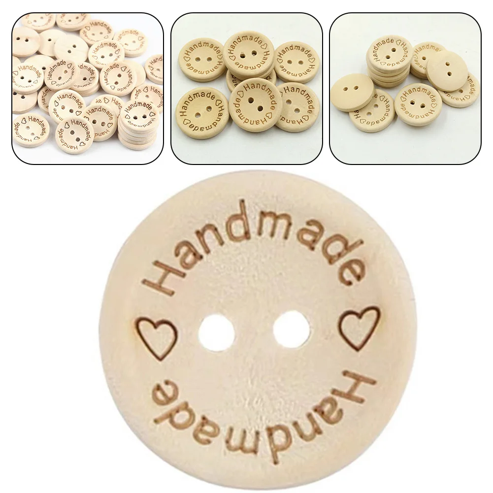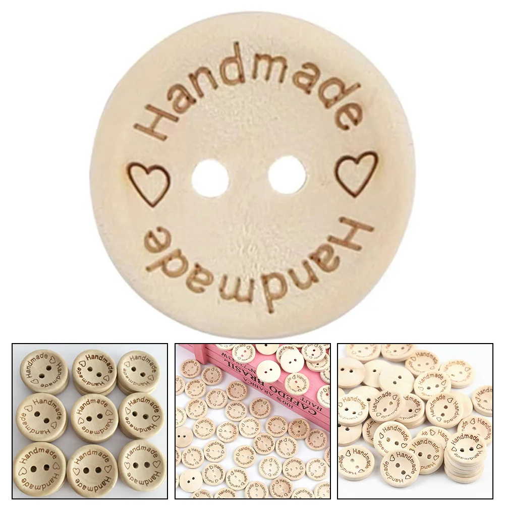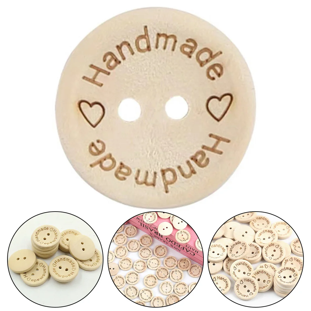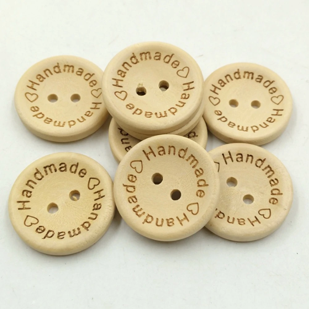 [Laser engraving process] – Letter handmade with love and heart shapes on round buttons.olorful and stylish shape design, nice ornament for clothes, can redesign your clothes and bags for your special style