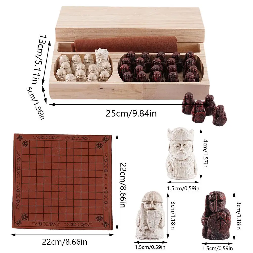New Traditional Strategy Portable Board Game Crafted For Adults Kids Classic Two Player Tabletop Travel Vintage Viking Ches C8K2