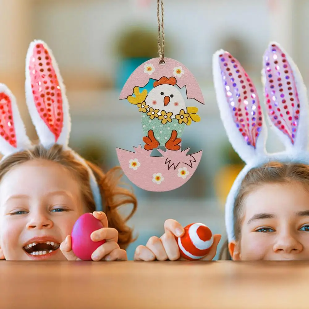 Wooden Easter Eggs Happy Easter Party Decorations for Home Colorful Bunny Bird Egg Hanging Ornament DIY Craft Kids Gifts Toy